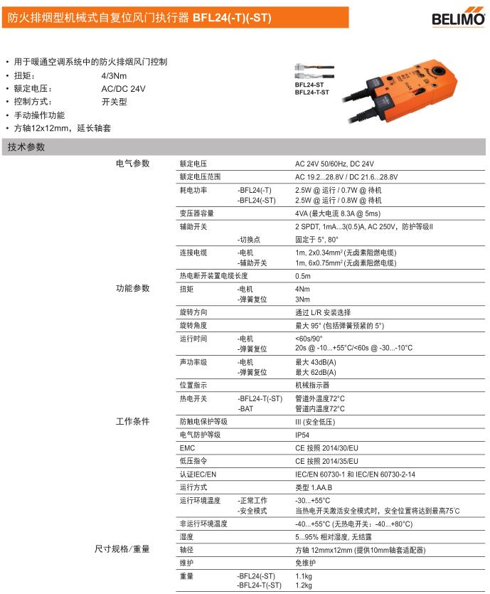 • BFL24防火排煙型機(jī)械式自復(fù)位風(fēng)門(mén)執(zhí)行器